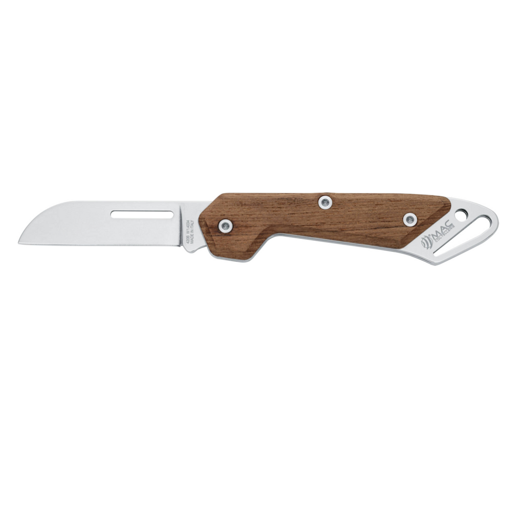 Blade: stainless steel - W 1.4034Hardness: 54-56HRC • Thickness: 2 mm - 0.078” • Weight: 95 g - 3.35 ozHandle material: Teak woodKnife lenght: 19 cm - 7.48"Blade lenght: 6,5 cm - 2.55"