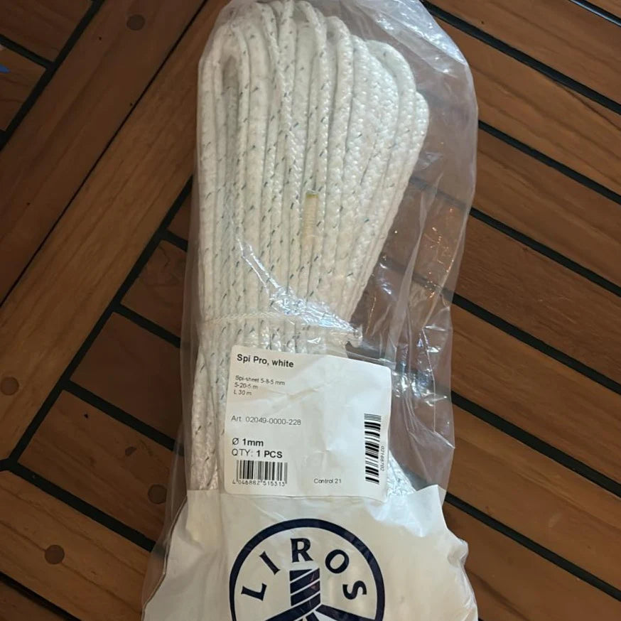 LIROS Etchells Spinnaker Sheet. Very light, high quality, individually produced tapered spi sheet with extremely low stretch and high strength thanks to a new construction using a high proportion of Dyneema® SK78 in the core. Minimum water absorption.