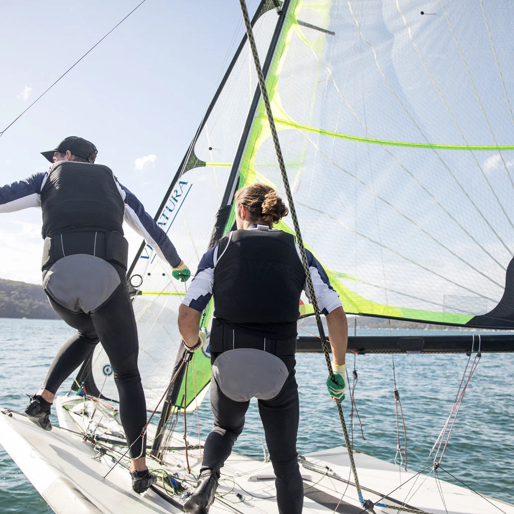Developed and refined by champion sailors to significantly reduce harness hip compression by evenly distributing harness loads. Optimized for comfort and support with a strong stainless steel spreader bar and load reduction panels that disperse harness point loads.
