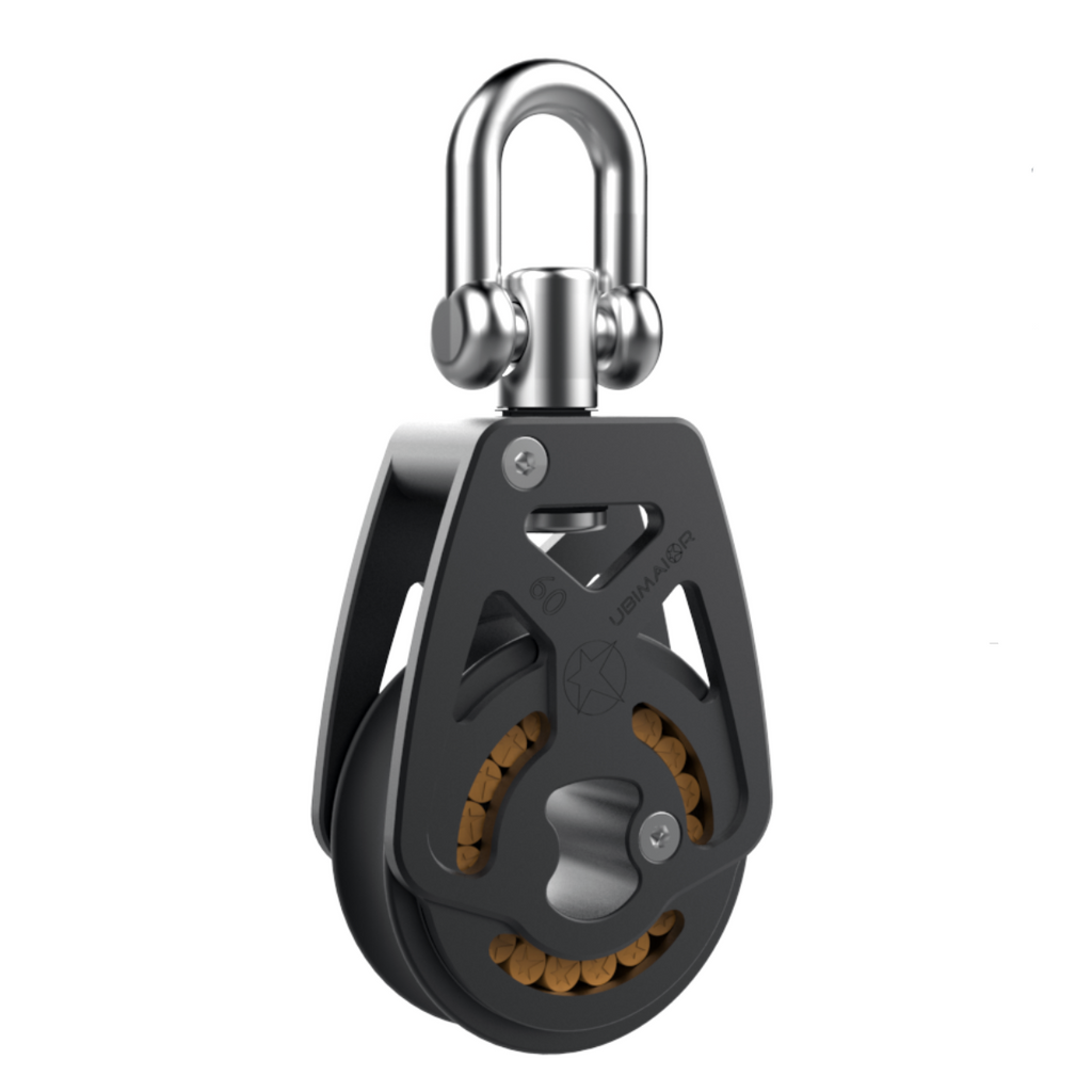 Ø SHEAVE: 60mmSHACKLE: 8HRmmMAX Ø LINE: 12mmMAX WORKING LOAD: 1800KgBREAKING LOAD: 3600KgLENGTH: 112mmWEIGHT: 180g
