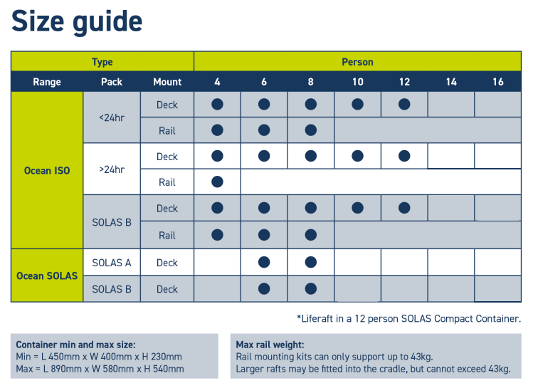 - Max liferaft weight when rail mounted – 43kg